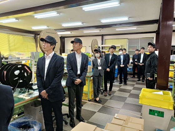 当日は40名を超える皆さまにご参加いただき、はじめに約30分間の会社説明を行いました。ここでは、弊社の経営方針、事業内容、そしてビジネスモデルにおける強みなどをご紹介しました。その後、約1時間の工場見学に移り、実際の製造現場をご覧いただくとともに、改善活動の柱であるTPS(トヨタ生産方式)の具体的な取組みについて、改善ボードを前に事例を交えてご説明しました。最後の質疑応答では、参加者の皆さまから多くのご質問を頂戴し、大変活発な意見交換の時間となりました。