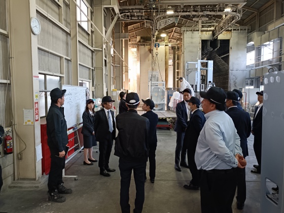 この会議は、国・県・市町および各種産業支援機関が連携し、補助金などの支援策を有効に活用するとともに、地域で活躍する企業の取組みを共有し、地域経済の活性化を図ることを目的としています。今回は第2回目の開催となり、地元企業を訪問して学ぶ企画の一環として、弊社をご視察いただきました。
