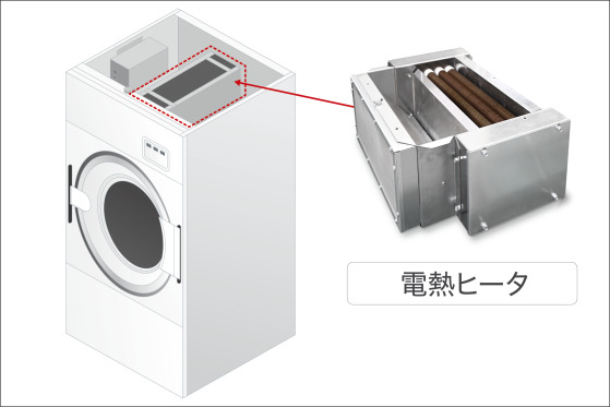 電熱ヒータの熱量を増加。ガス式乾燥機と遜色のない乾燥能力を実現。