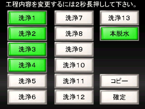 高防振仕様全自動水洗機のプログラムを変更した、「ふとん洗い仕様」水洗機。2連のポンプが標準装備